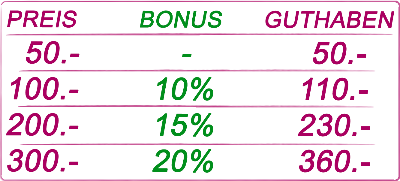 Mit unsere Bonusprogramm erhalten Sie bis zu